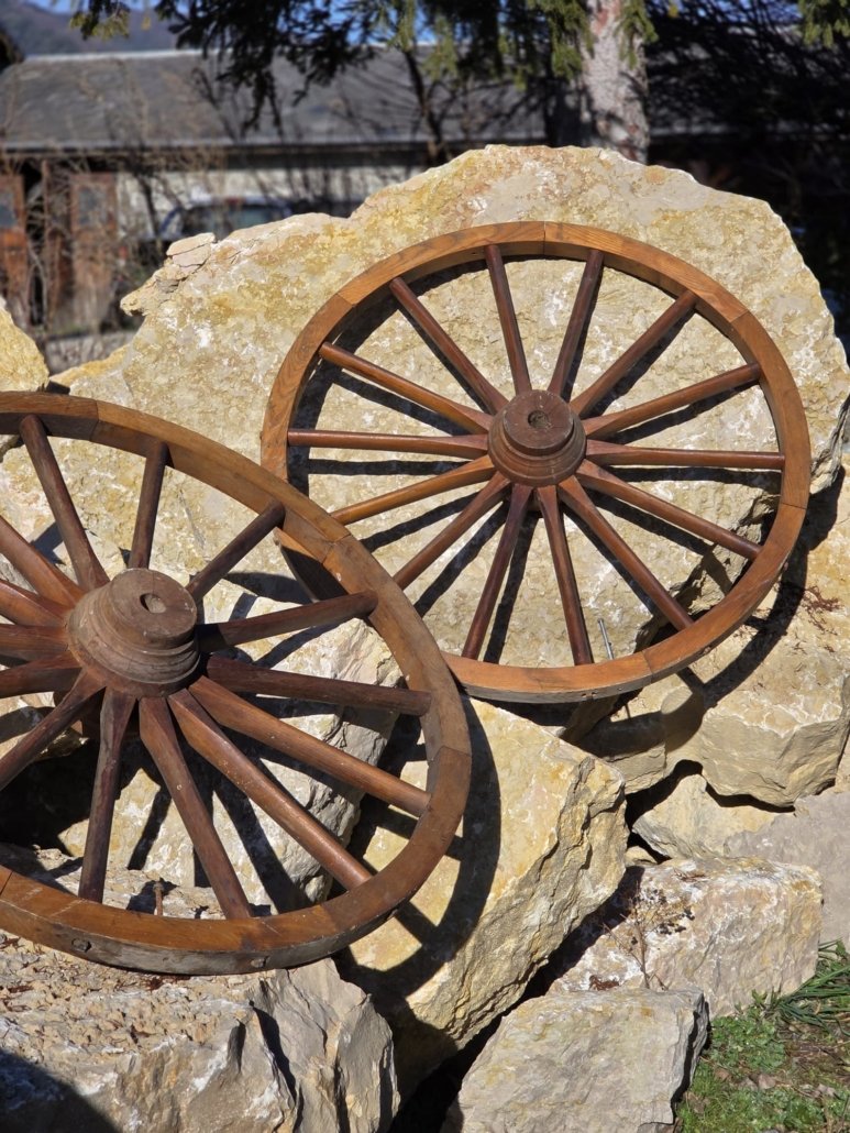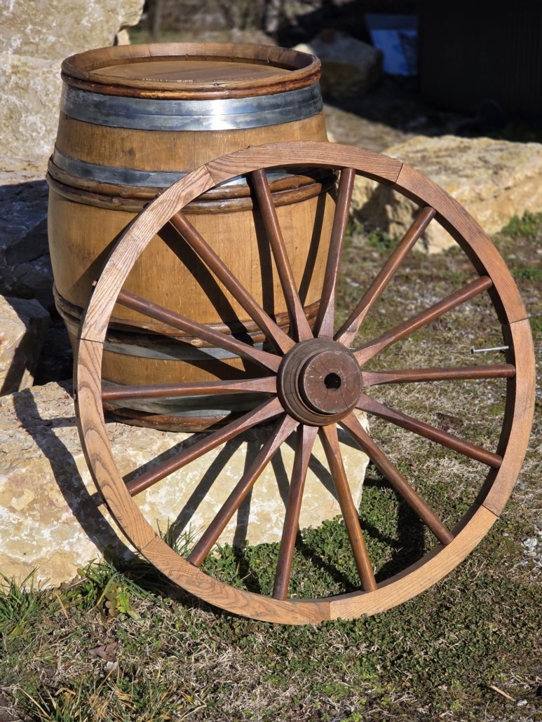 Ajoutez une touche authentique et pleine de charme à votre décoration avec ces roues de charrette en bois disponibles à la location.