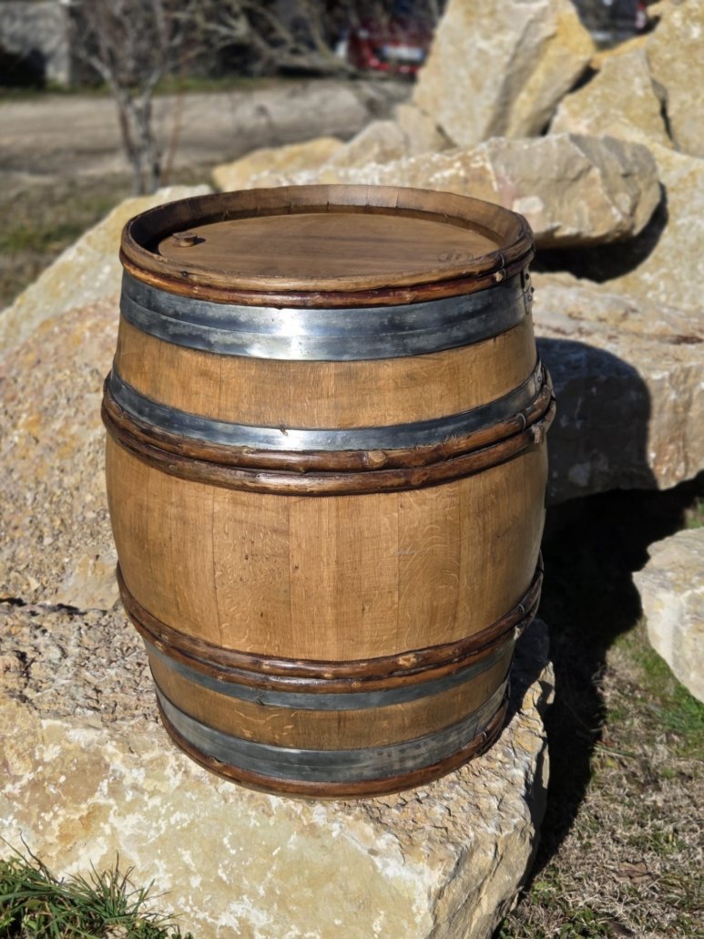 Apportez une touche rustique et élégante à votre décoration avec ce tonneau en bois disponible à la location.